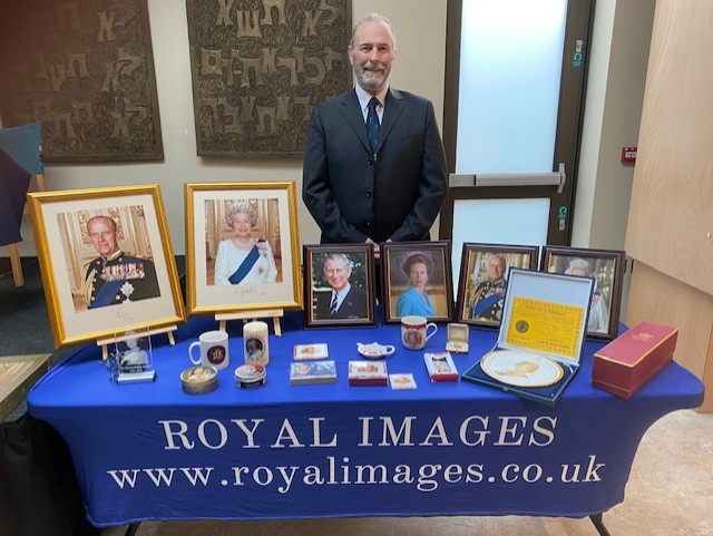He demonstrated how royal insignias can be transferred onto keepsakes such as ashtrays and pottery, and his display of commemorative playing cards, produced for the 50th anniversary of the Queen’s accession, fascinated everyone. Perhaps most extraordinary was the chance for everyone to see a range of photographs spanning the Queen’s life alongside Prince Philip to the present day with King Charles and Queen Camilla.